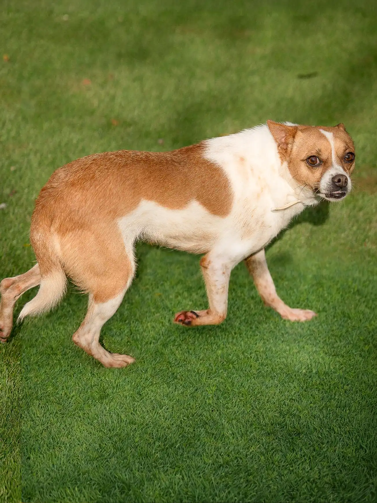 She is a gentle and sensitive girl who prefers calm environments and steady routines. Once she feels secure, she shows her affectionate and loyal nature, staying close to the people she bonds with and enjoying peaceful time together. She walks well on a leash, is house-trained, and adapts well to structured daily life.